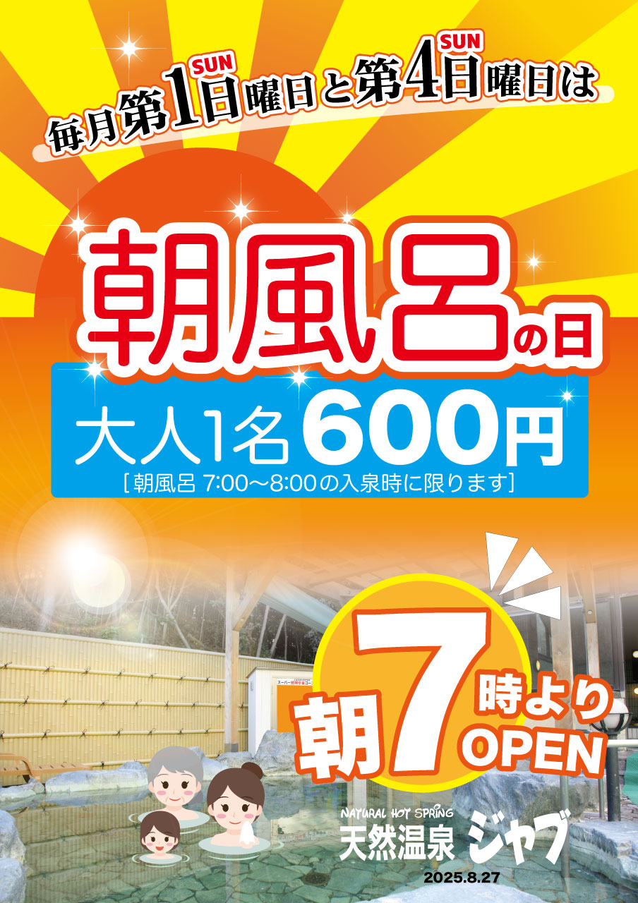 朝風呂の日の開催曜日追加のお知らせ